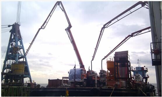 中聯重科拖泵固定在船上助力大橋橋墩混凝土澆筑