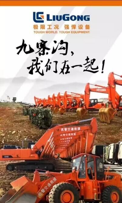 災情發生后,柳工迅速做出反應。柳工駐川辦事處及當地經銷商迅速響應,集結挖掘機設備、各類配件及生活物資,連夜出發緊急趕往現場,展開星夜馳援!8月9日凌晨,柳工集結的挖掘機設備和物資列隊向九寨溝進發,目前已在江油下高速,等待武警部隊通知,接受指揮中心統一調度,理性救援。