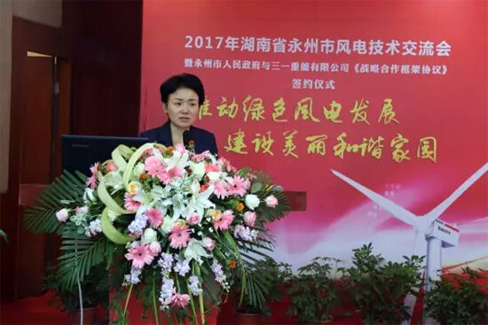李暉指出,永州市與三一重能合作,有利于搶占未來能源發展的新高地,有利于雙方的共建共享共贏。要強化合作交流,發展風電產業集群是永州市能源發展“十三五”規劃的重點任務,永州風電產業加快抱團發展、做大做強是必然選擇。
