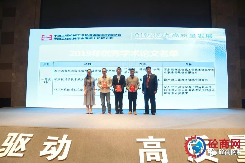 中國工程機械工業協會混凝土機械分會符忠軒會長以及中國工程機械工業協會混凝土機械分會顧問易君女士為優秀論文一等獎獲得者頒發獲獎證書;