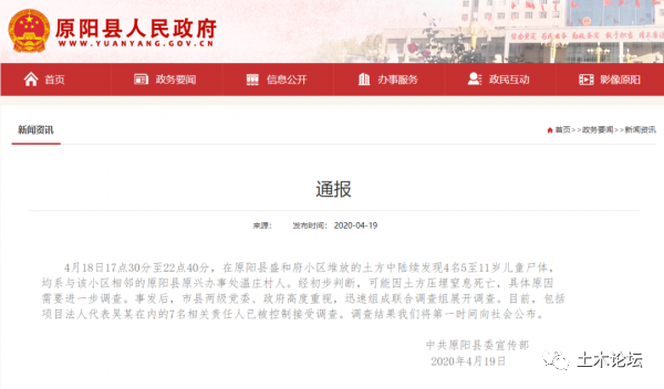 河南違建項目土方施工致4名兒童被埋身亡