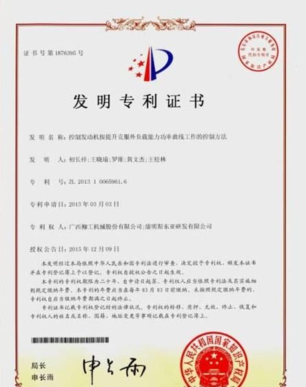 近日,柳工“控制發(fā)動機按提升克服外負載能力功率曲線工作的控制方法”的發(fā)明專利獲得國家專利局授權(quán)。這是柳工進入發(fā)動機領(lǐng)域的第一項技術(shù)發(fā)明專利,同時也是與世界級企業(yè)康明斯合作的標志性技術(shù)成果。