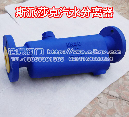 大量含水的蒸汽進(jìn)入汽水分離器,并在其中以離心向下傾斜式運(yùn)動。夾帶的水份由于速度的降低而被分離出來。被分離出來的液體流入下部經(jīng)疏水閥排出體外,干燥清潔的蒸汽從分離器出口排出。