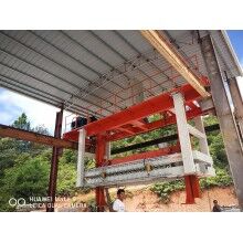 移動(dòng)式掰板機(jī)工作流程:蒸養(yǎng)完成的成品連同模具側(cè)板被模具側(cè)板運(yùn)輸裝置送至移動(dòng)掰板機(jī)下,頂升裝置啟動(dòng),將坯體連同側(cè)板頂起,移動(dòng)掰板機(jī)從上層至下層依次掰開,掰至底層后,移動(dòng)掰板機(jī)將全部成品夾起,并移至砌塊成品打包線上,將砌塊放置在該打包線上,移動(dòng)掰板機(jī)繼續(xù)將加氣板移動(dòng)至加氣板輸送打包線上,重新返回。掰扳機(jī)專門負(fù)責(zé)坯體切開之后(經(jīng)蒸養(yǎng))又重新粘連在一起,在自動(dòng)打包之前將其一塊一塊分離,消除由于粘連造成的廢、次品,同時(shí)保證打包線正常運(yùn)行。