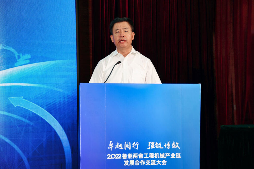 山東省工業(yè)和信息化廳副廳長(zhǎng)靖士寬表示:“山東是裝備制造業(yè)大省,產(chǎn)品種類豐富,農(nóng)業(yè)機(jī)械、機(jī)械基礎(chǔ)件、鑄造、工程機(jī)械、內(nèi)燃機(jī)、醫(yī)療設(shè)備、汽車(chē)行業(yè)居全國(guó)前列。從產(chǎn)業(yè)規(guī)模、競(jìng)爭(zhēng)力、影響力等方面來(lái)看,湖南省、山東省都是工程機(jī)械強(qiáng)省,都承擔(dān)著國(guó)家工程機(jī)械產(chǎn)業(yè)鏈供應(yīng)鏈安全的重任,‘優(yōu)勢(shì)互補(bǔ)、協(xié)同創(chuàng)新、合作共贏’將會(huì)成為我們兩省下一步合作的主旋律。這次共同舉辦2022魯湘兩省工程機(jī)械產(chǎn)業(yè)鏈發(fā)展合作交流大會(huì),是推動(dòng)湖南、山東兩省工程機(jī)械產(chǎn)業(yè)發(fā)展,促進(jìn)兩省產(chǎn)業(yè)鏈企業(yè)合作,打通兩省產(chǎn)業(yè)鏈協(xié)作創(chuàng)新,引領(lǐng)全國(guó)工程機(jī)械產(chǎn)業(yè)發(fā)展的重要實(shí)踐。”